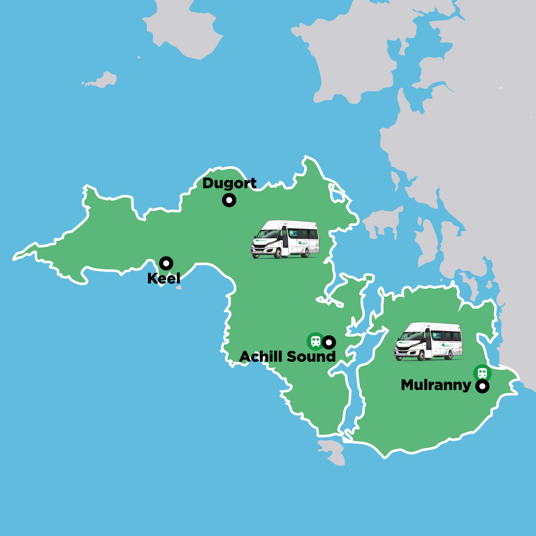 TFI Anseo is a new smart demand responsive transport service operating in Achill, Killarney and north-east Limerick city, initially. Using the TFI Anseo app, you can book a bus to pick you up from a location within the areas serviced in Achill, Killarney and in north-east Limerick city service areas.