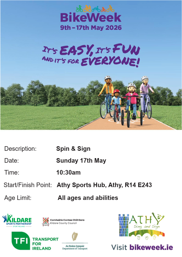 Spin & Sign is a fun, welcoming, family-friendly community cycle created to bring together the Deaf community, Athy Sign & Sign members, and our wider local community for a relaxed […]