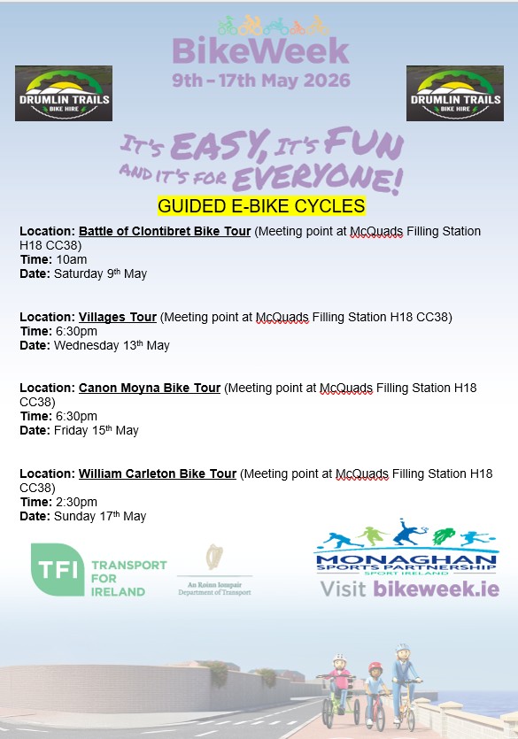 E-bike guided loop tour's around villages, historical sites in trails in north Monaghan. These will accommodate 10 cyclists; an extra bike will be used by guide. The tour will be […]