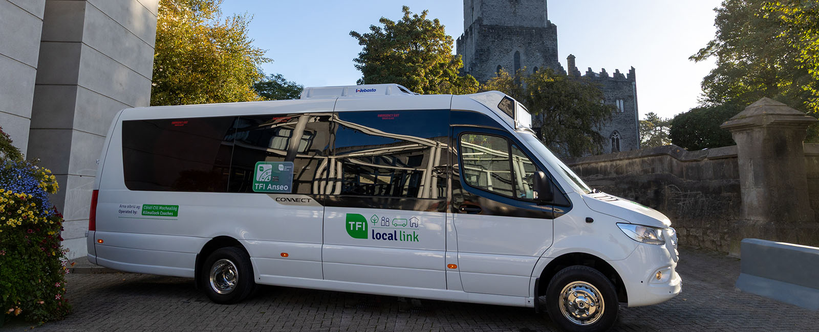 Le haip nua TFI Anseo, beidh tú in ann seirbhís bus a ordú chun tú a bhailiú ón áit a bhfuil tú in Acaill, i gCill Airne agus i gCathair Luimnigh .