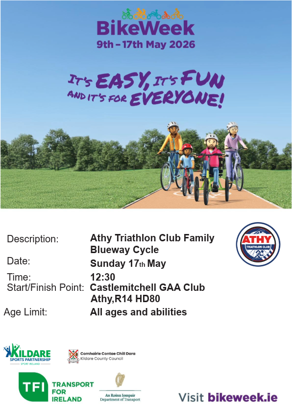 Bike Week is funded by the Department of Transport, coordinated by TFI and brought to you by the Local Authorities and Sport Partnerships.