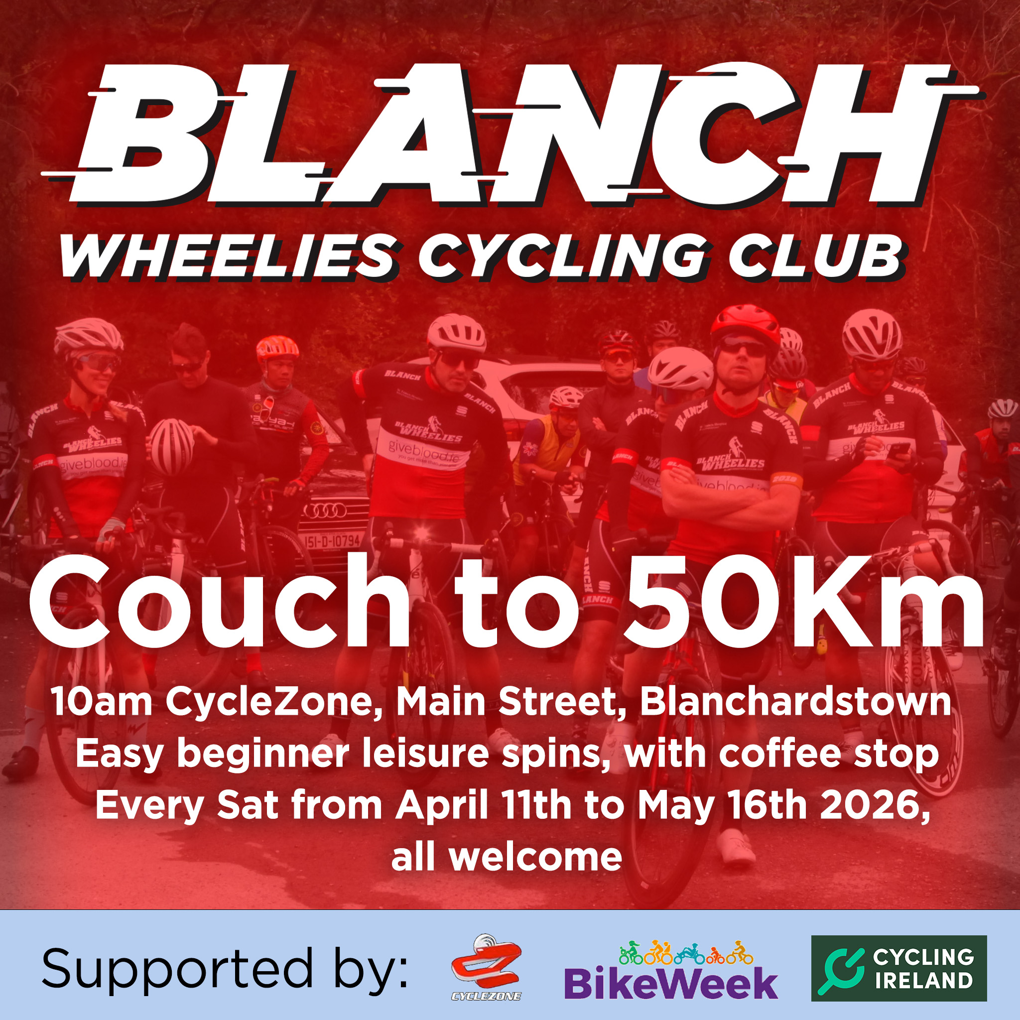 Want to try out group cycling? The BlanchWheelies will be running beginners' social 'Couch to 50k' spins as part of Bike Week 2026. Spins are aimed at those wanting to […]