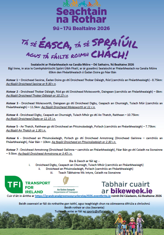 Scoil Chroí Naofa, Carn Domhnach, proposes to deliver a “Decorate Your Bike Parade” as part of National Bike Week 2026, taking place in Barrack Hill Gardens & Play Park, a […]