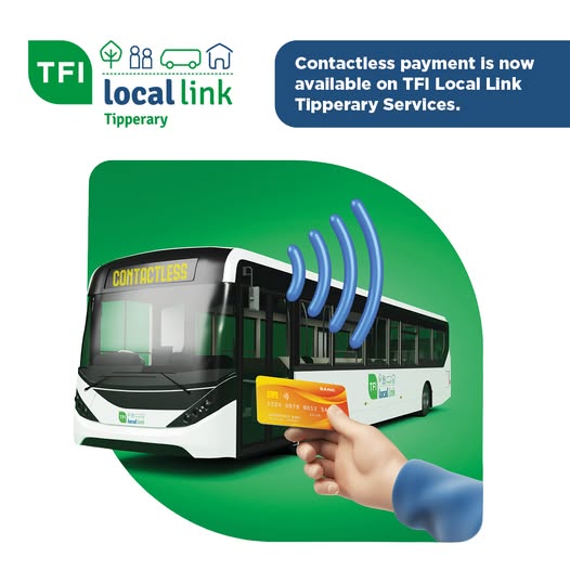 From Monday, 1st December, passengers travelling on TFI Local Link Tipperary services will be able to pay their fares using debit or credit cards, as well as mobile payment options such as Apple Pay and Google Pay.