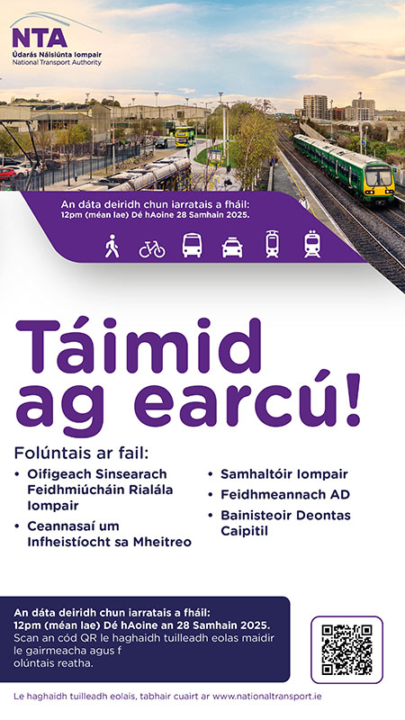 Tá daoine cumasacha díograiseacha á lorg againn chun bheith mar bhaill dár bhfoireann de ghairmithe tiomanta, agus iad ag cabhrú le todhchaí iompar poiblí na hÉireann a mhúnlú agus a fhíorú.